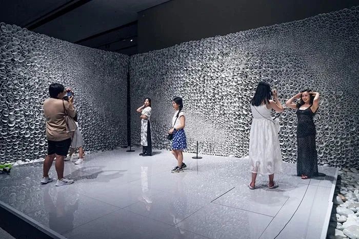 李修建研究员多年来完成了大量西方艺术人类学前沿理论和学科发展的翻译和讨论工作,包括《西方艺术人类学而研究指南》《舞蹈人类学十讲》等译著问世,积累了非常扎实的艺术人类学和艺术美学的理论功底,在此基础上,李修建研究员融汇各个跨界视角的研讨,再次回归艺术美学的理论维度谈到中国式审美等话题。他指出,在大致的区分中,中华美学精神关涉宫廷美学、文人美学、民间美学三个维度,其各自的美感特征和追求不尽相同。在朱乐耕教授不同时期的作品中,我们可以发现,其对三种审美精神都有吸收,并且做到了和谐共融,与当下强调中华优秀传统文化的双创问题、中国式现代化、人类命运共同体等概念不谋而合。这一次展览尤其突出展示了一种中国式审美的表达和当代呈现,结合大量AR、3D打印等技术实践,真正实现了“在传承中创造”的展览主题。深究其在公众视野中引发的现象级关注的原因,正是在于其将文人美学追求的淡雅简约和民间美学注重的热闹喜庆、百花齐放、万紫千红等特点融洽呈现于一个当代艺术空间中,既能唤醒一种集体性的文化记忆和共识,也契合中国人普遍的审美心理和审美情感,产生一种兼具欣喜的亲近感。