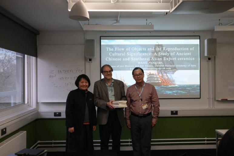 当地时间2026年3月26日和27日,学会名誉会长方李莉在伦敦大学学院考古学院做了题为“后农业文明实践样本观测——来自景德镇社会转型的启示”的讲座,正在伦敦大学学院考古学院从事访问学者的学会秘书长王永健做了题为“器物的流动与文化意义再生产——环南中国海外销瓷研究”的讲座,并向伦敦大学学院考古学院捐赠了图书,伦敦大学学院考古学院中国文化遗产与考古学研究国际中心执行主任傅稻镰(Dorian Fuller)教授代表学院接受了捐赠。讲座后,与伦敦大学学院考古学院罗德尼·哈里森(Rodney Harrison)教授、傅稻镰教授和比尔·希勒( Bill Sillar )教授开展了深入座谈交流。在seminar环节,随行中南大学谢旭斌教授关于“惜字塔文化遗产与书香文化”的发言,及各位来访的硕、博研究生分享了各自研究主题。