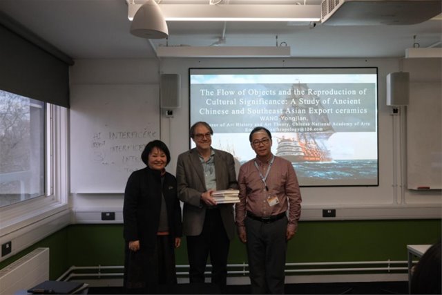 当地时间2026年4月13日,方李莉一行走进挪威奥斯陆大学,方李莉受邀在该校社会人类学系做“景德镇模式——以艺术撬动遗产资源的新型发展模式”讲座,讲座由阿诺德·施耐德(Arnd Schneider)教授主持,施耐德教授是当代“艺术人类学—视觉人类学”交叉领域的领军学者,致力于通过当代艺术、影像实验与跨国民族志,重新定义人类学研究的形式与边界。通过讲座加深了中挪两国在艺术人类学研究方面的了解。讲座结束后双方围绕艺术人类学研究课题合作、合编论文集、学术资源共享等内容充分沟通,正式建立起稳定的学术研究合作联系,方李莉等邀请施耐德教授赴山东大学参加本年度的学术年会,施耐德教授欣然应允。此行进一步拓展了学会在北欧地区的学术合作网络。
