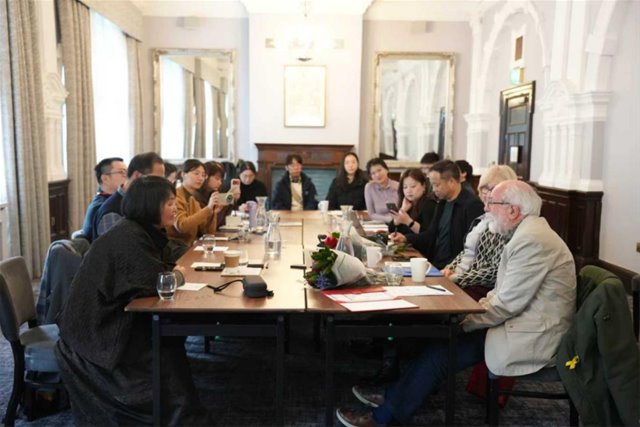 此后,学术团队一行前往伦敦政治经济学院人类学系的“席米纳”(Seminar)教室。“席米纳”由著名人类学家布罗尼斯拉夫·马林诺夫斯基发起,至今坚持了一百零一年,每星期五做讲座,这里曾是费孝通先生的母校。伦敦政治经济学院历史悠久,人类学系是欧洲人类学的大本营。费孝通先生曾在这里参加“席米纳”并开展学术讲座与交流。本次活动由人类学系教授汉斯·施泰因米勒(Hans Steinmüller)主持,方李莉教授首先做了题为“景德镇模式——以艺术撬动遗产资源的新型发展模式”的讲座,讲座完毕,双方在研究视角与方法论层面进行了深入的讨论,有交锋也有共识,进一步拓宽了团队的国际学术视野。