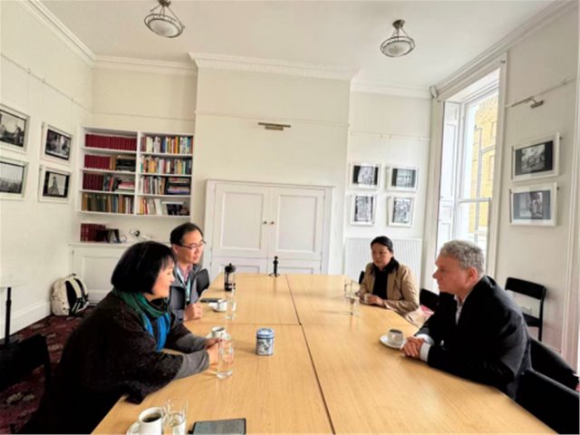 当地时间2026年4月15日,欧洲行收官之行来到英国皇家人类学学会(RAI),皇家人类学学会成立于1871年,是世界上历史最悠久、制度最稳定、国际影响力最持久的人类学学术组织之一,在全球人类学知识生产、学术规范确立与公共传播中具有“枢纽性”地位。方李莉与该学会会长大卫·尚克兰(David Shankland)教授开展长达一个半小时的深度座谈。双方分别详细介绍了各自学会的发展历程、学术定位、会员体系、学术研究方向及未来发展目标,并就学科建设、学术活动举办、中国艺术海外传播、人类学与艺术实践跨界合作等议题深入交换意见,最终达成联合举办学术会议、共同开展学术工作坊的重要合作意向,为两大学会后续常态化、深层次合作奠定了坚实基础。