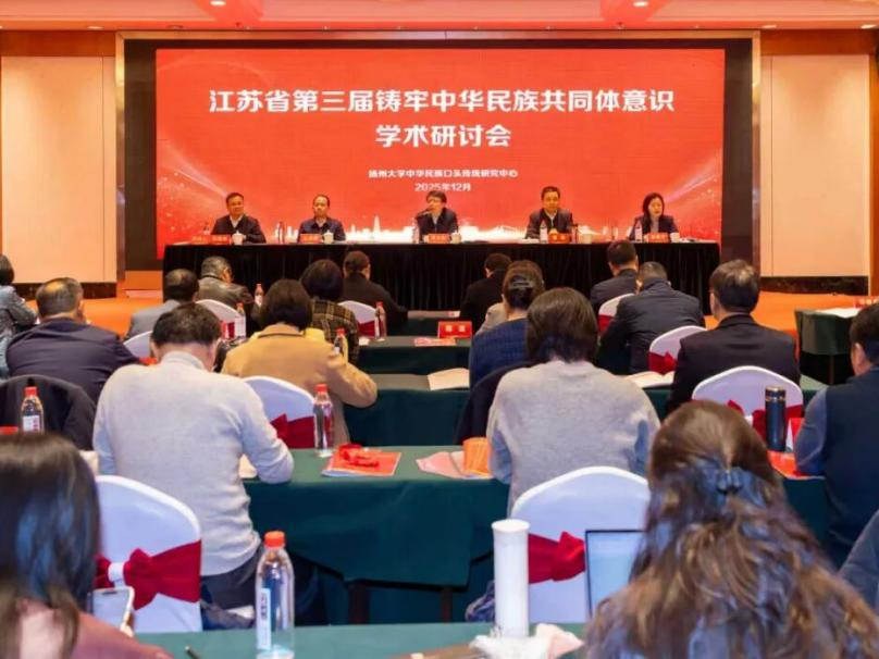 12月5日,以“铸牢中华民族共同体意识的理论探源与实践创新”为主题的江苏省第三届铸牢中华民族共同体意识学术研讨会在扬州举办。国家民委理论研究司二级巡视员刘元如,江苏省民宗委党组成员、副主任秦华,扬州大学党委常委、副校长王承堂出席会议。与此同时,来自全国相关高校和科研单位、铸牢中华民族共同体意识研究基地的专家学者,省委宣传部、省委统战部、省教育厅、省民宗委有关处室负责人,各设区市民宗局有关负责人和业务处室负责人等近100人参加会议。
