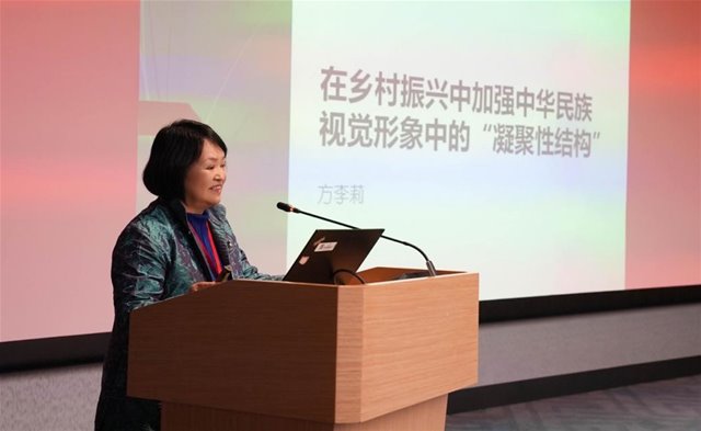 东南大学特聘首席教授、艺术人类学与社会学研究所所长、中华民族视觉形象国家研究基地首席专家兼副主任方李莉教授应邀作主题发言,报告题为“在乡村振兴中加强中华民族视觉形象中的凝聚性结构”。她指出,中国传统宇宙观是中华民族视觉形象的深层根基,也是乡村振兴中重建文化认同与凝聚精神纽带的关键,应“从建筑与空间入手”,在当代乡村建设中系统理解和激活这一宇宙观背后的文化逻辑。