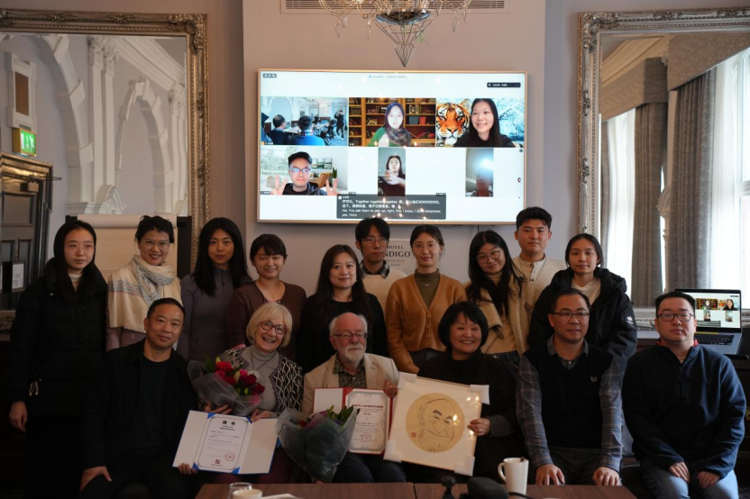 当地时间2026年4月2日至3日,方李莉一行专程前往杜伦大学,探望学会资深国际友人罗伯特·莱顿(Robert Layton)教授。现年81岁高龄的莱顿教授,是国际艺术人类学领域的权威专家,也是英国皇家科学院院士,长期关注并支持中国艺术人类学学会的发展。2024年中国艺术人类学学会曾授予中国艺术人类学学会国际学术贡献,但由于身体原因,罗伯特·莱顿教授未能前往领奖,在此次探访中,方李莉等带来了学会全体会员们的问候,并向莱顿教授郑重转授了中国艺术人类学学会国际学术贡献奖证书、学会学术委员会委员聘书,并转赠了由学会理事山东工艺美术学院宋晓军教授创作的莱顿教授漫画肖像,以感谢其多年来对学科发展及中外学术交流作出的卓越贡献。
